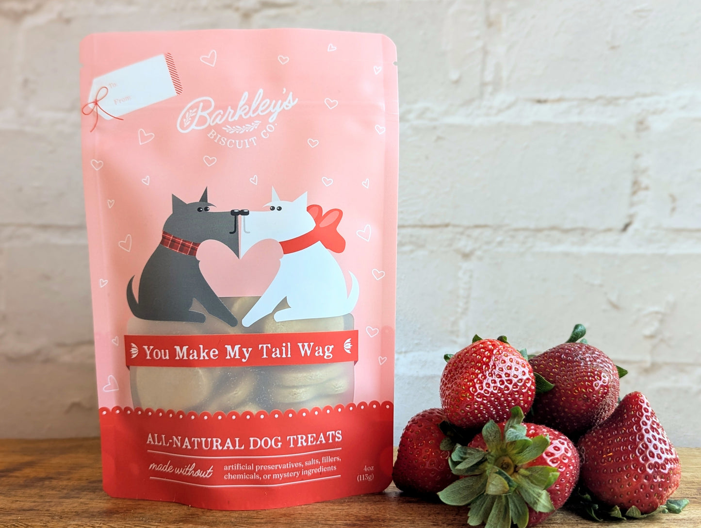 At Barkley's Biscuit Co., we believe in going that extra mile for your furry friend! By using just a few all-natural ingredients, we craft wholesome treats that you can feel good about giving your dog!